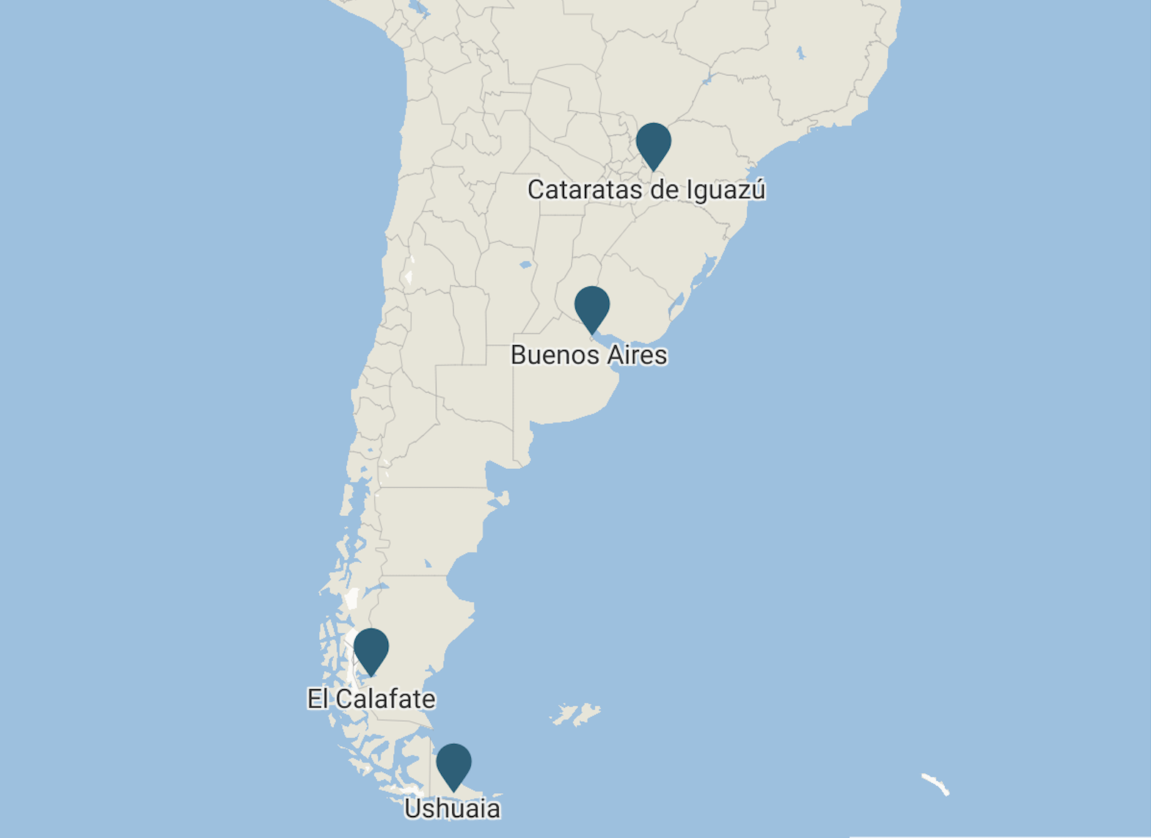 Buenos Aires, Cataratas del Iguazú, glaciar Perito Moreno, Ushuaia, Salta y Jujuy.